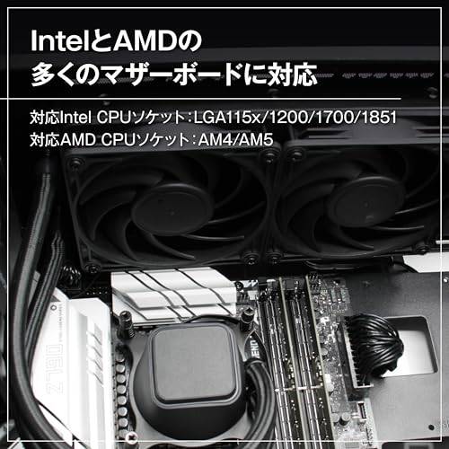 150W前後では高性能空冷クーラーが適正解となる。MUGEN6やFROZN A620等の1万円以下の空冷クーラーで完全に対応できる。360mm水冷は明らかに過剰だ。