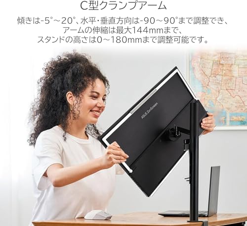 - 調整機能:高さ、角度、ピボット、スイベルすべて対応